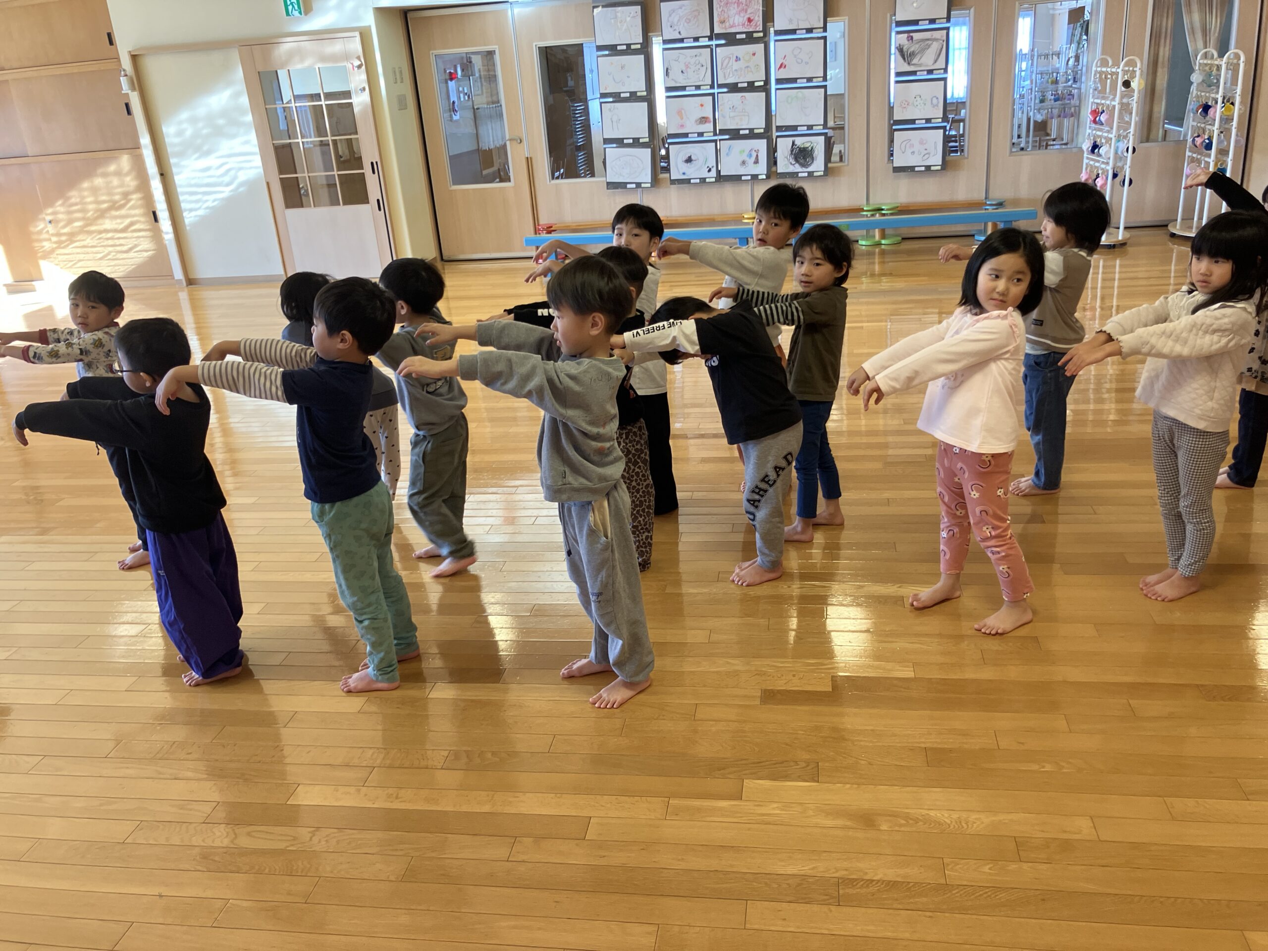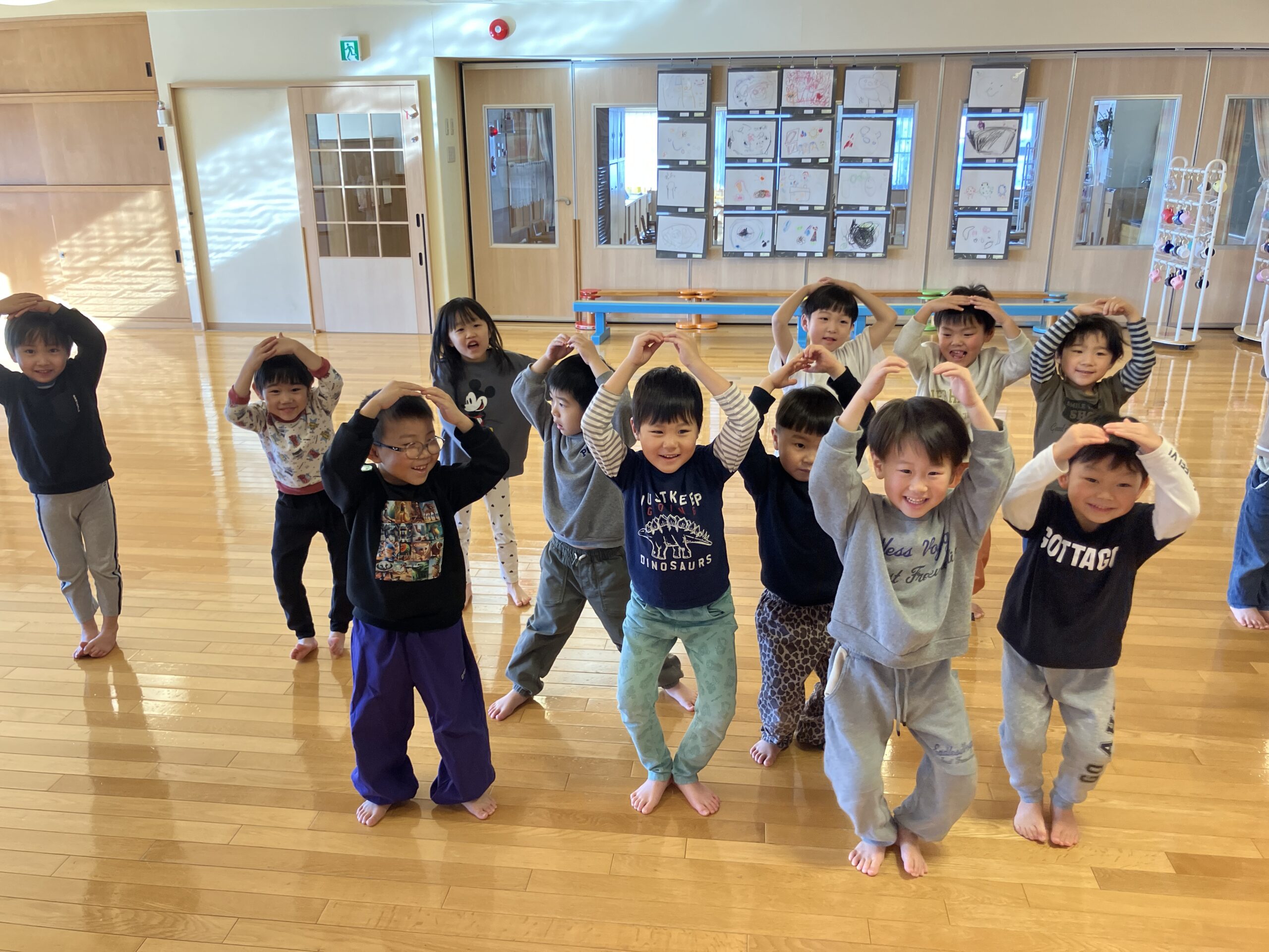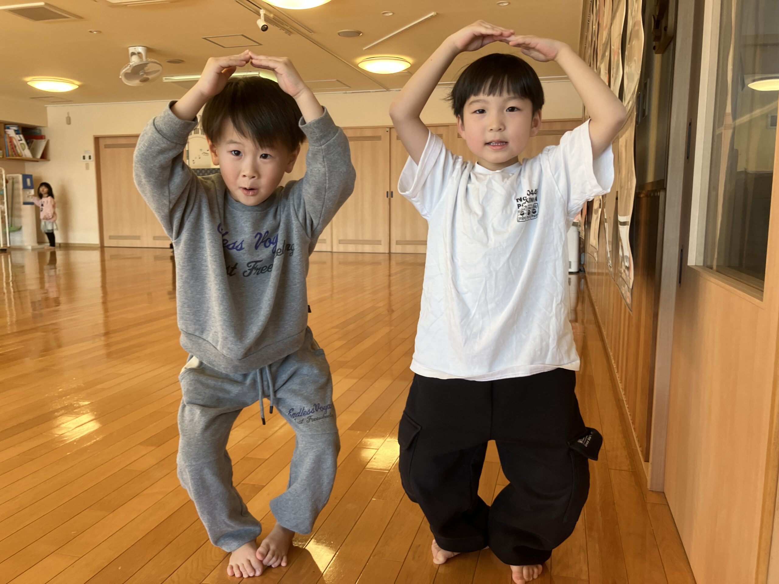 今月は、「体で数字を表現しよう!」というテーマで、全身を使って数字作りに挑戦しました。お手本を見ながら、1、2…8、9と体を動かして形を作り、「8と8で88!」と新しい発見を楽しむ姿も見られました😊