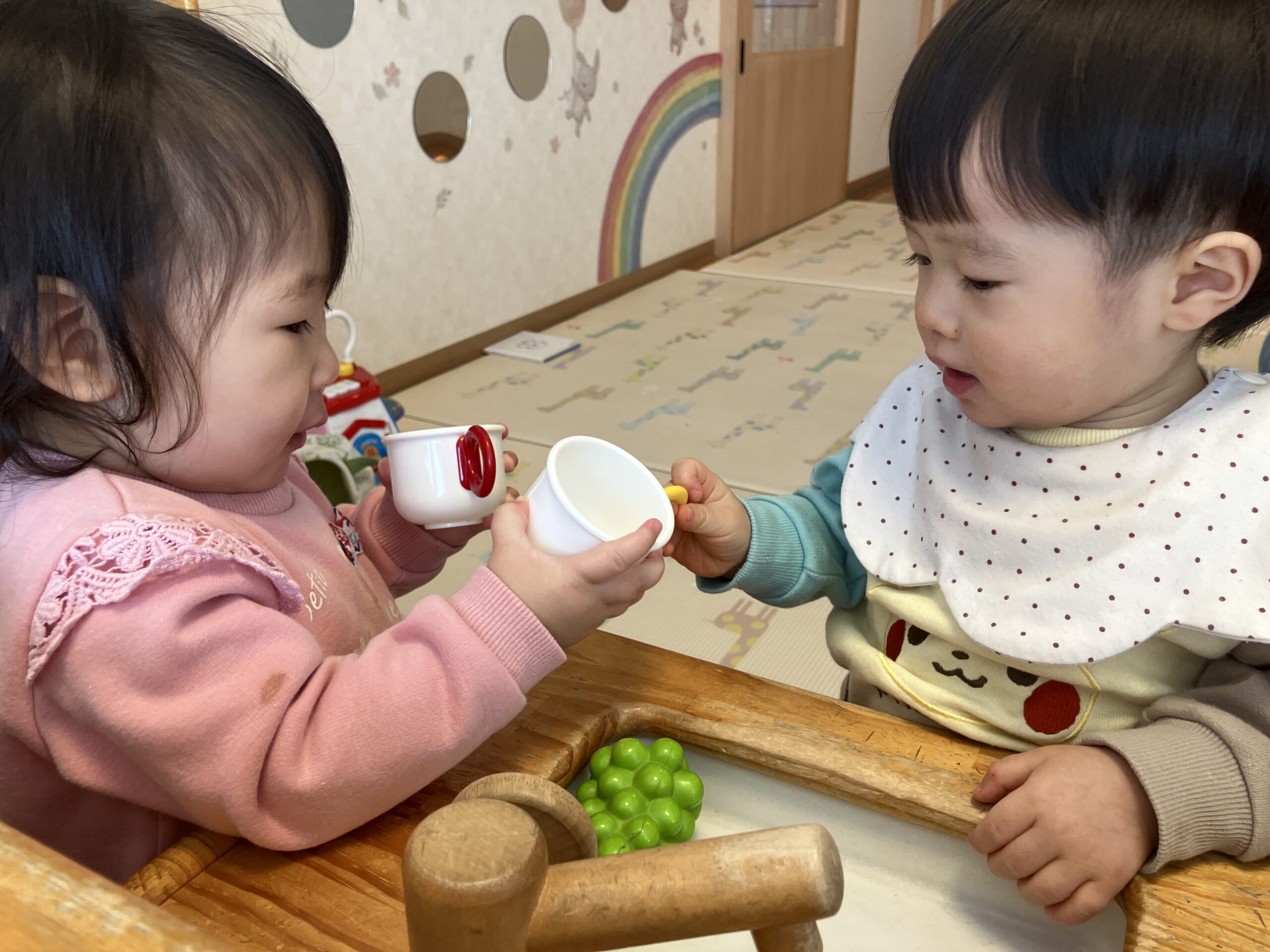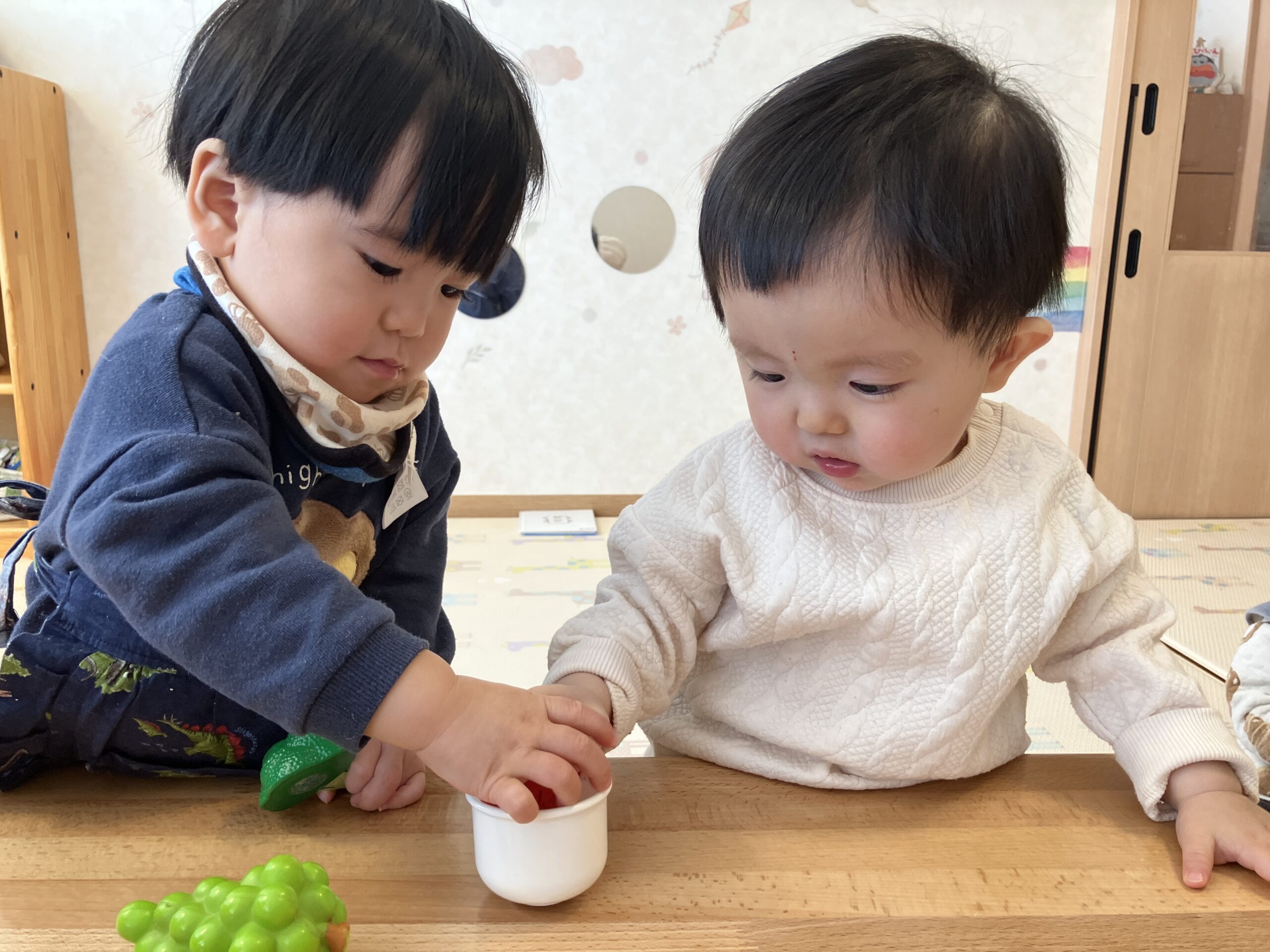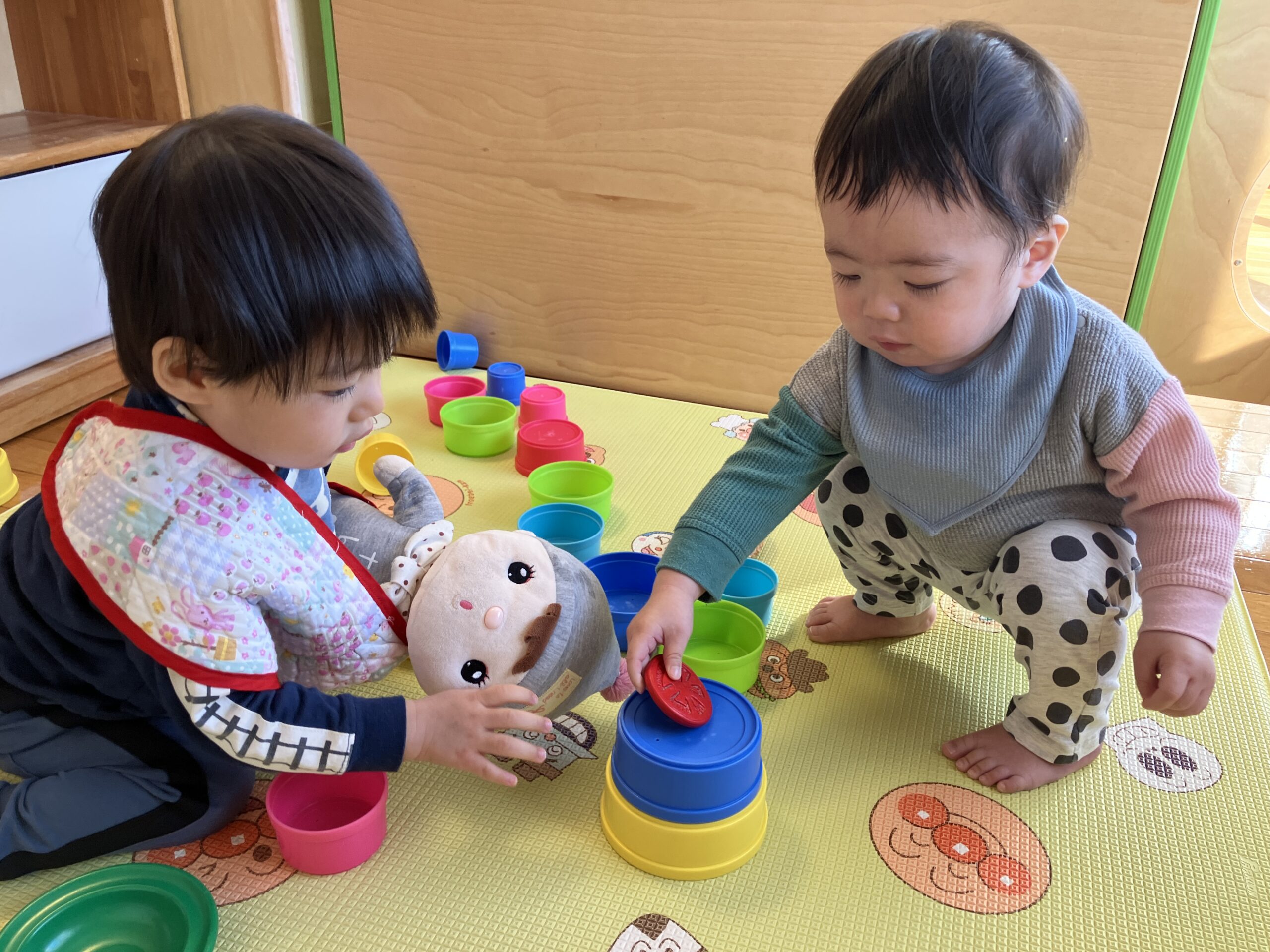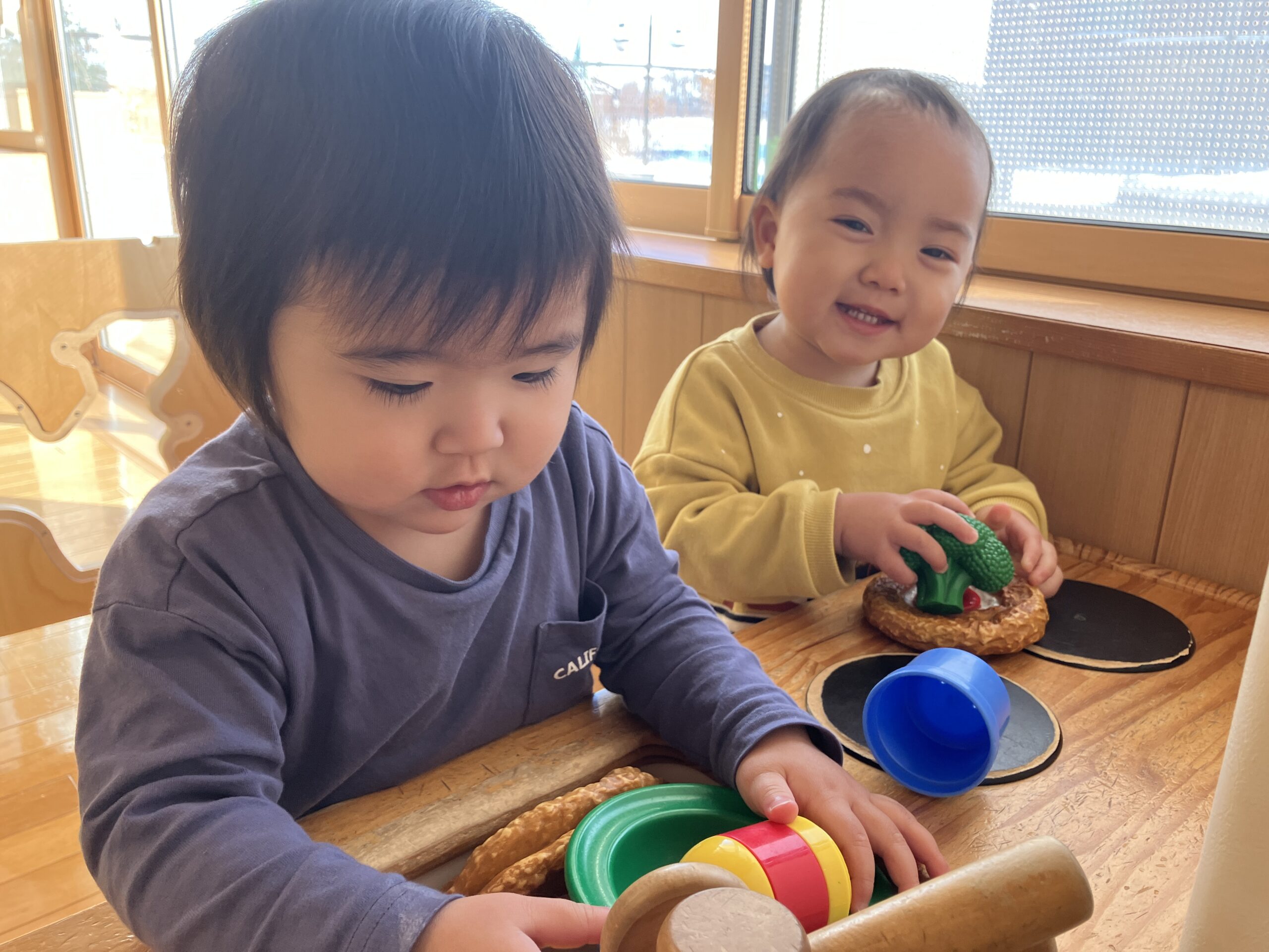 遊びの中で手先の動きや真似する力が少しずつ育ち、お友だちと玩具のやり取りをしたり、同じ遊びを一緒に楽しんだりする姿も見られるようになりました😊