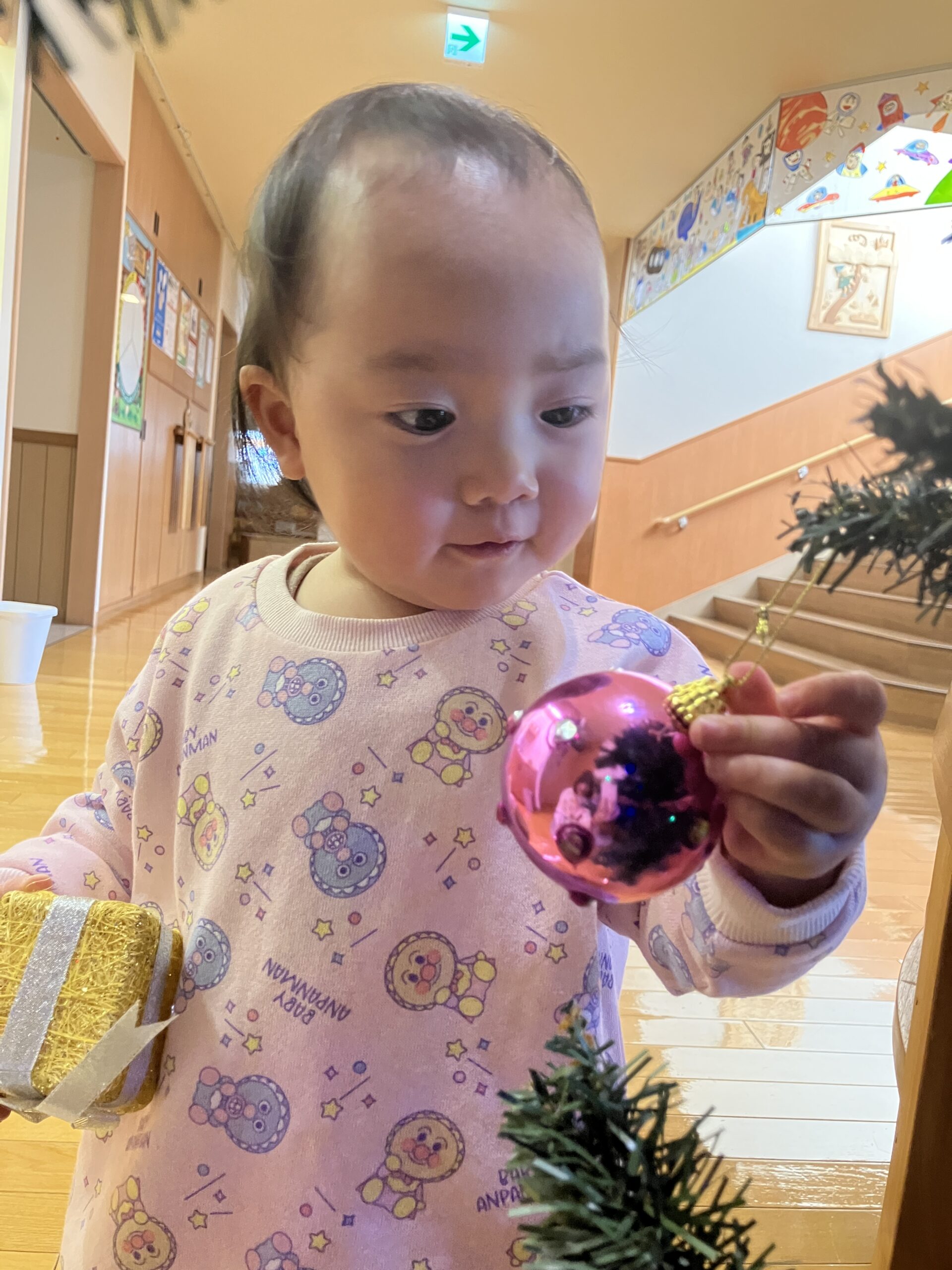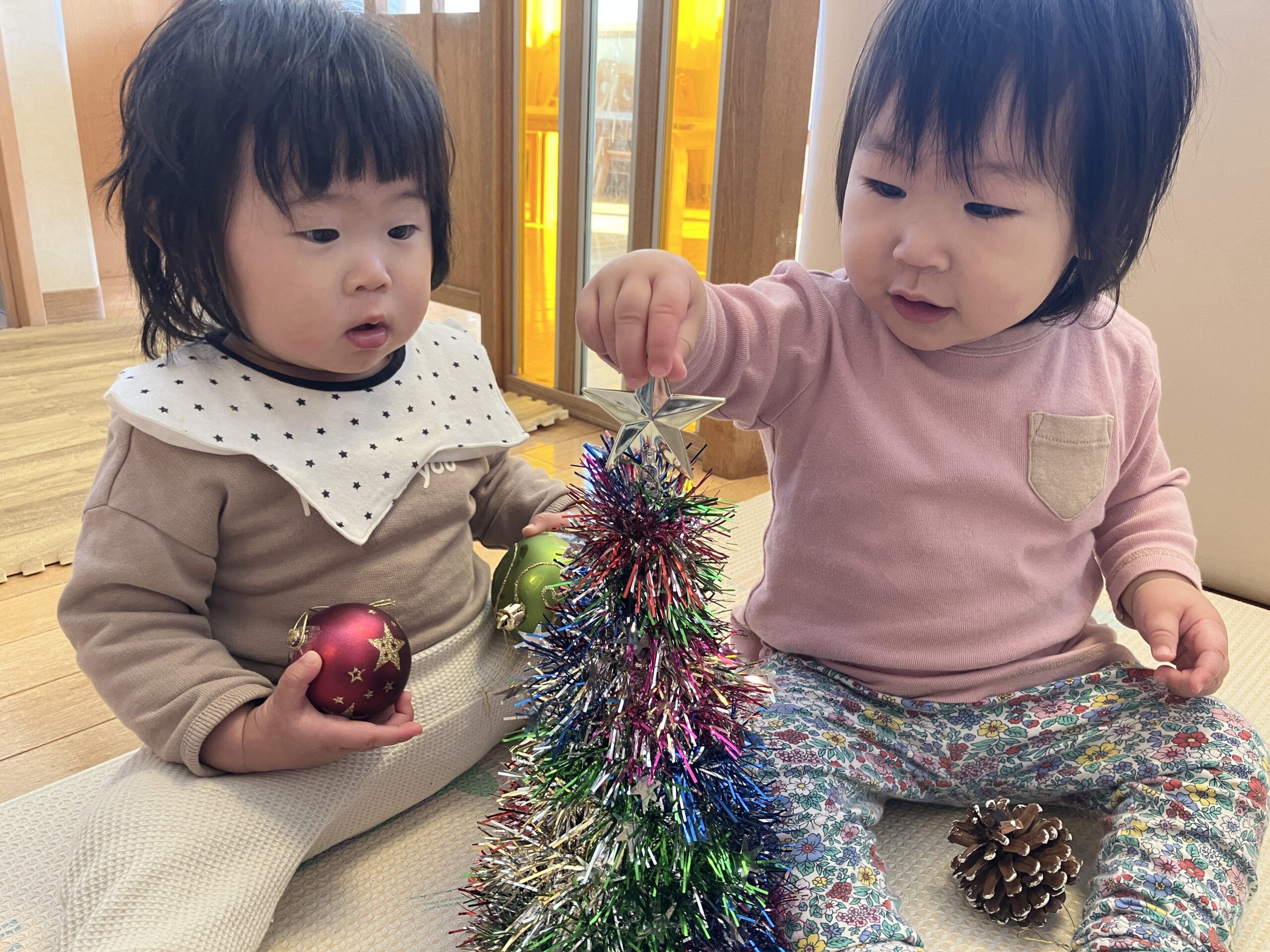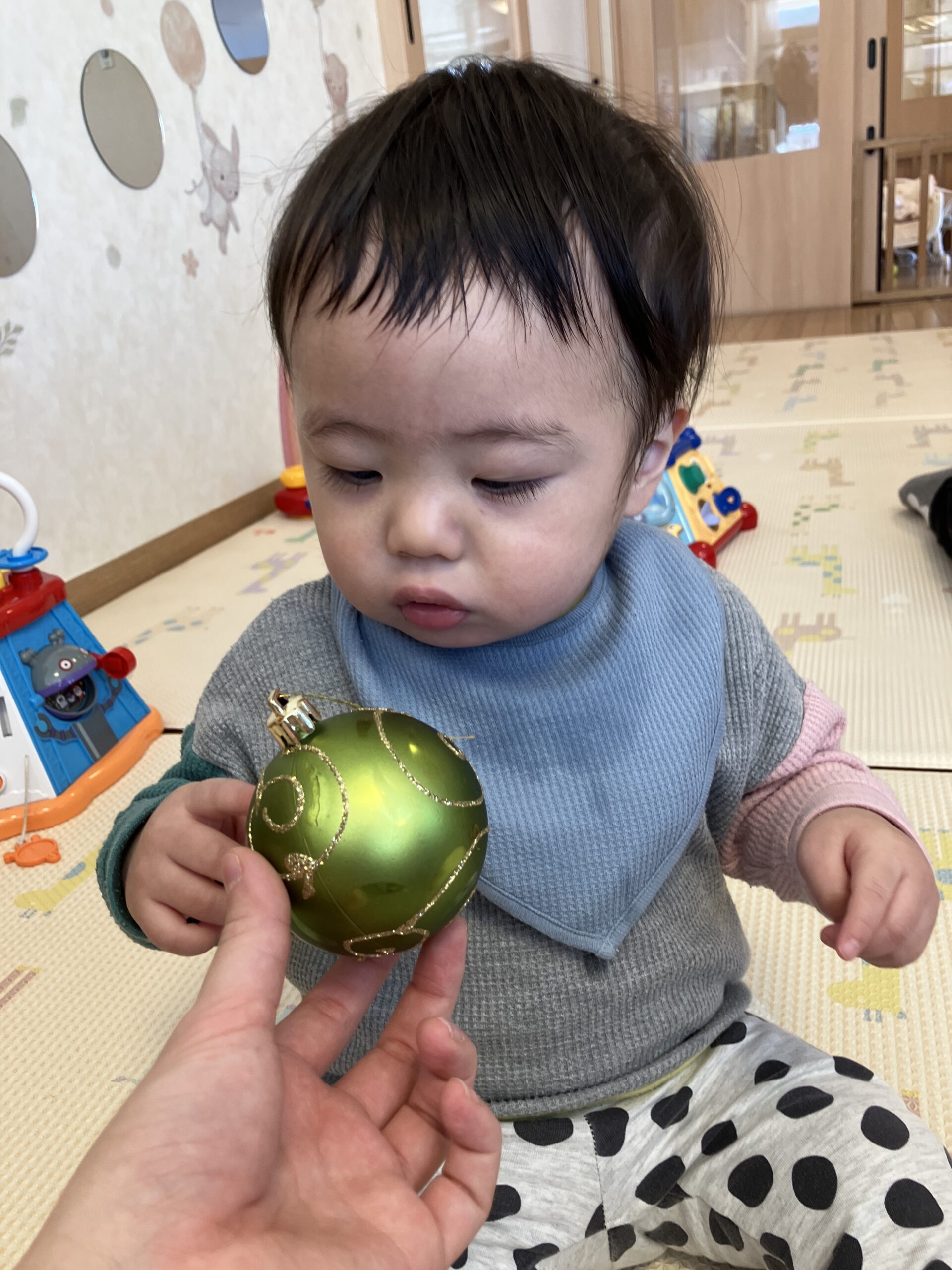 キラキラした飾りに興味を持ち、指をさしたり、じっと見つめたりする姿がとてもかわいらしかったです😄💛