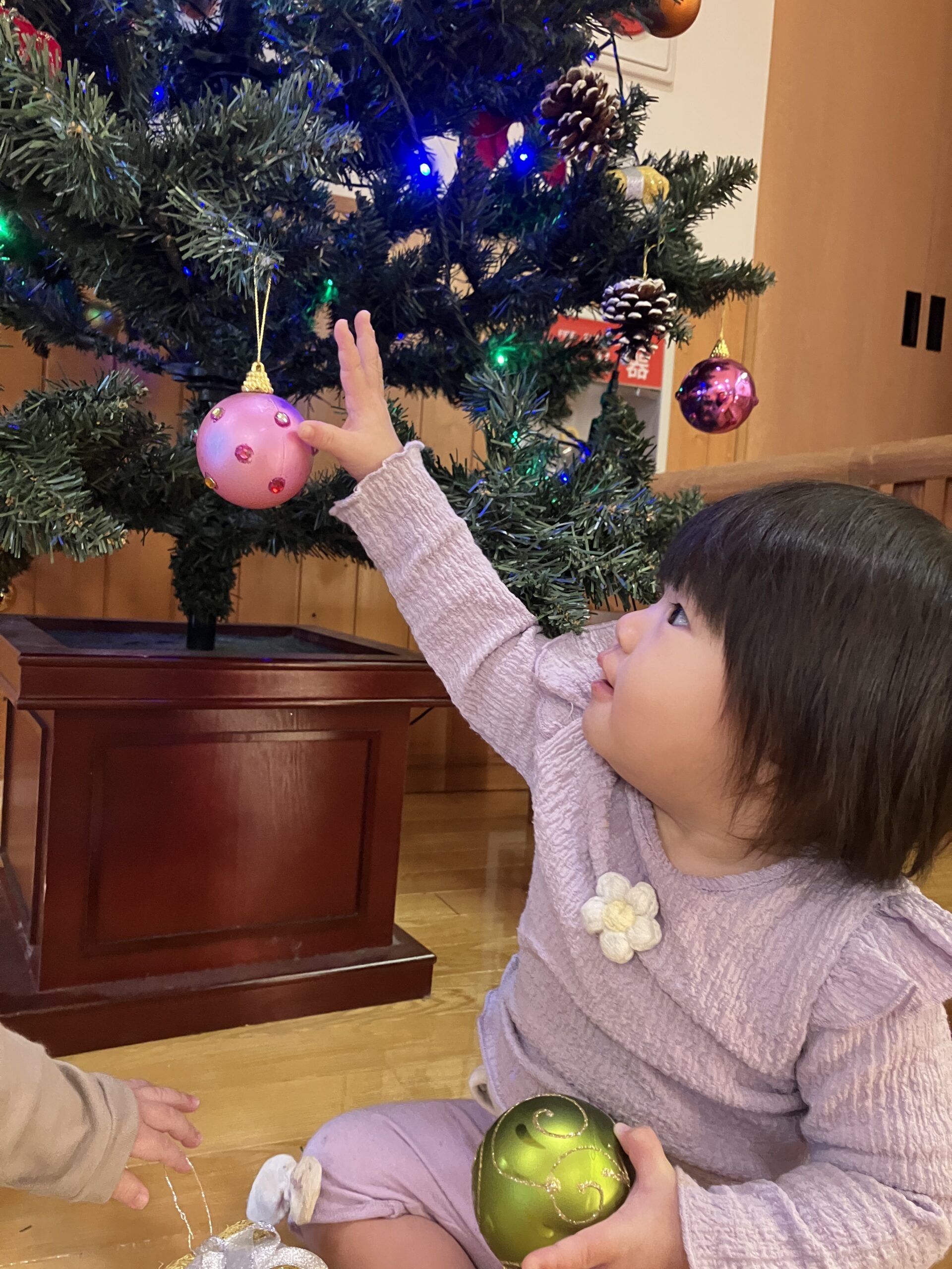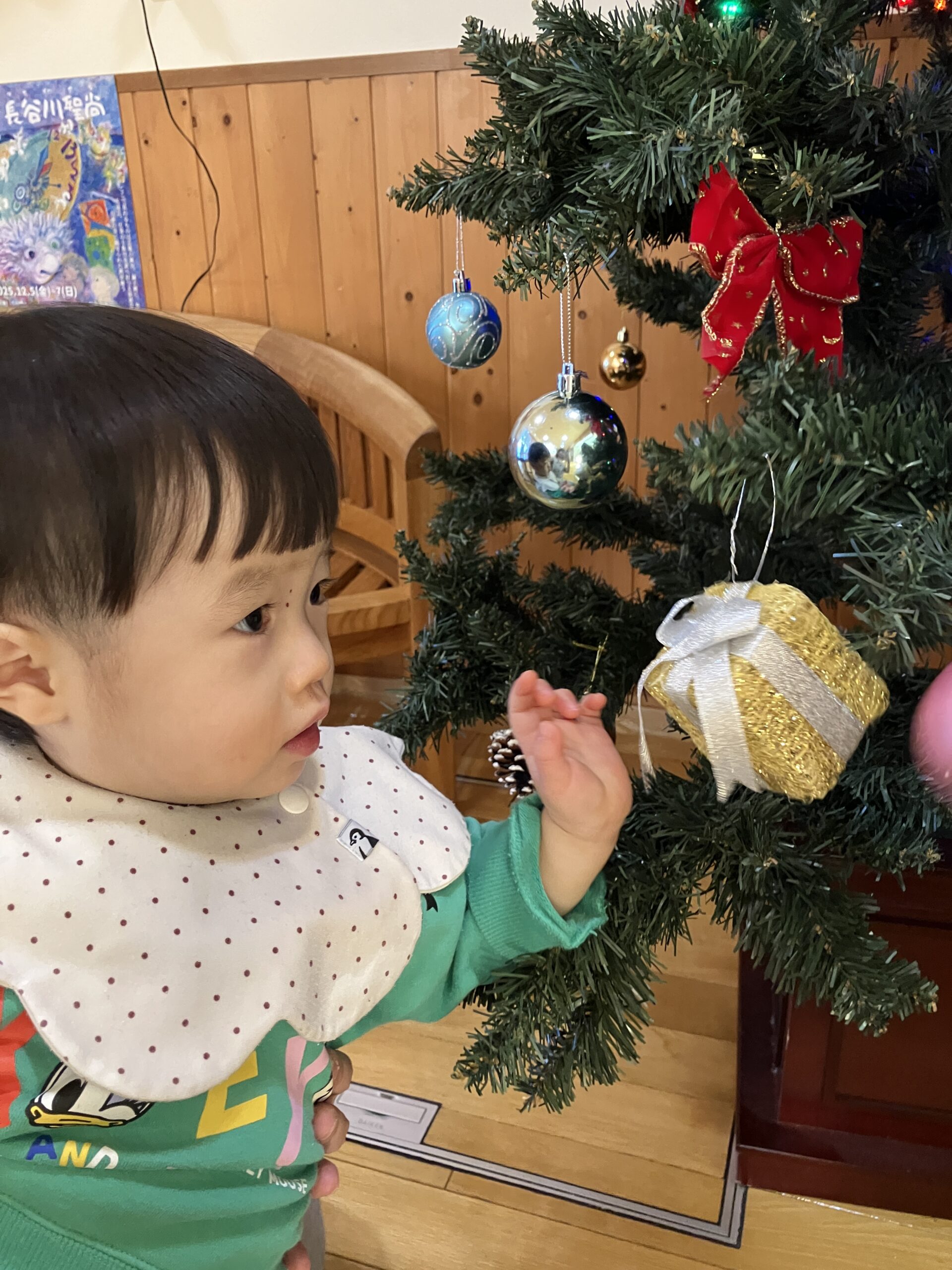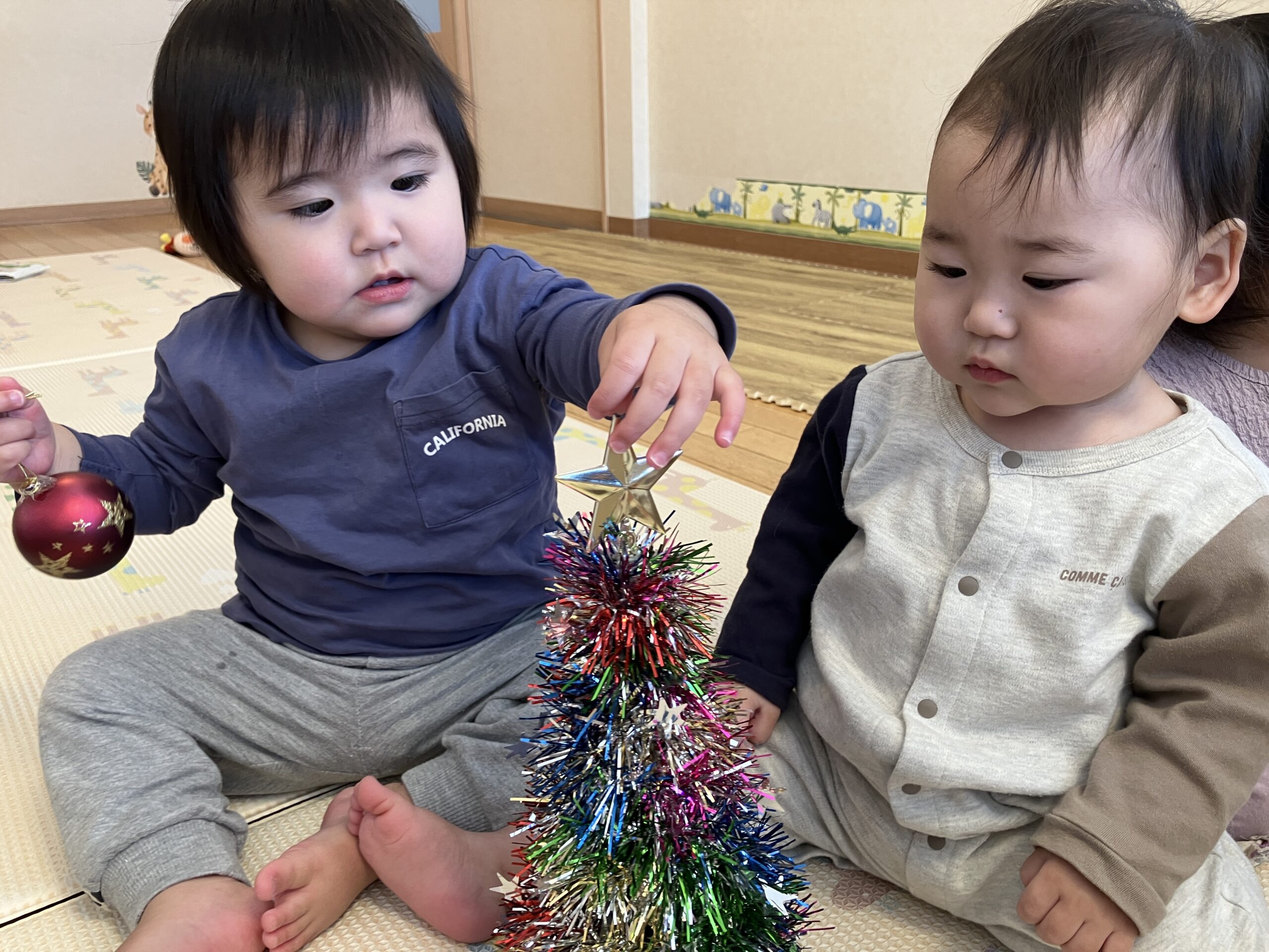 キラキラした飾りに興味を持ち、指をさしたり、じっと見つめたりする姿がとてもかわいらしかったです😄💛