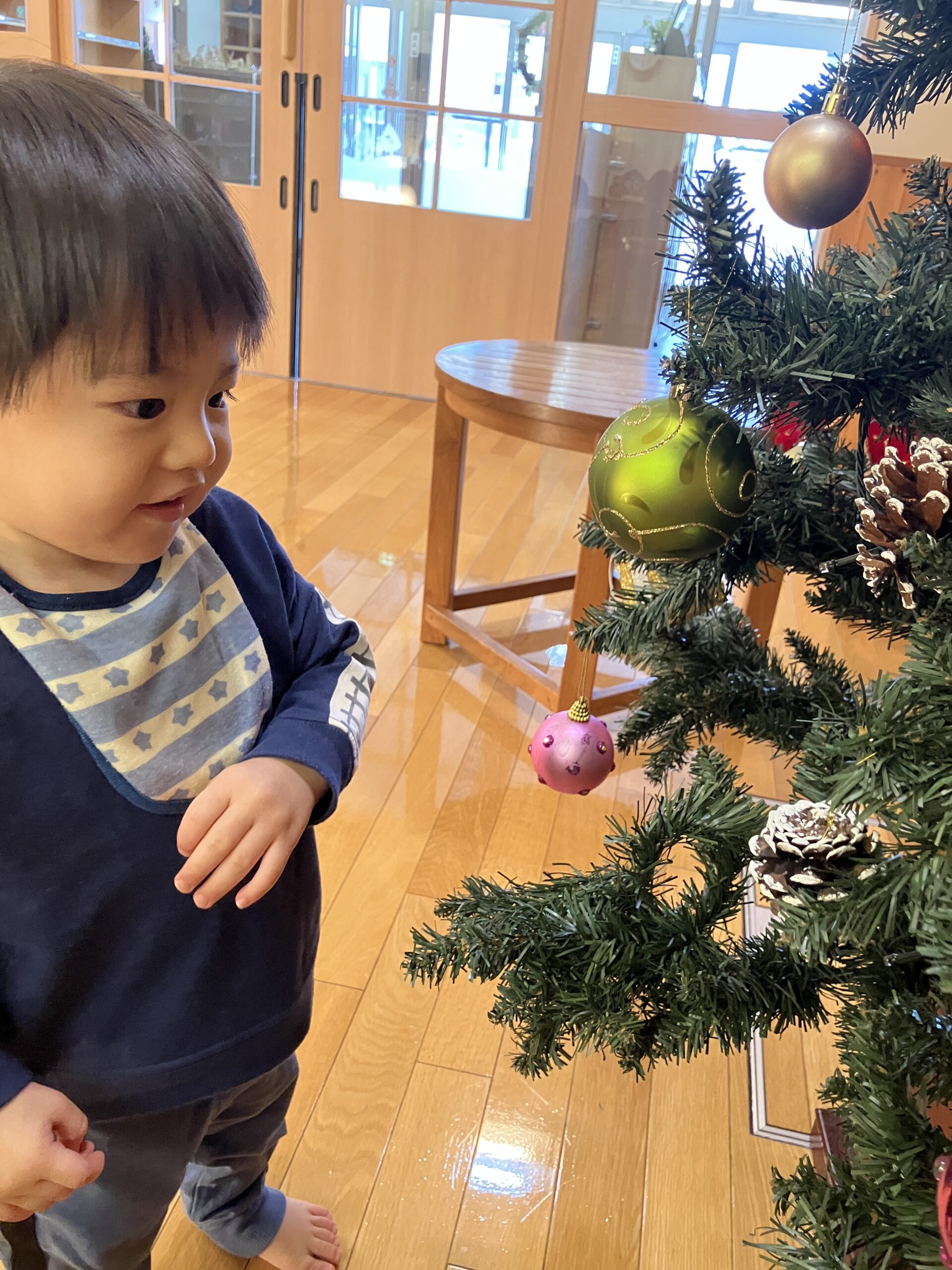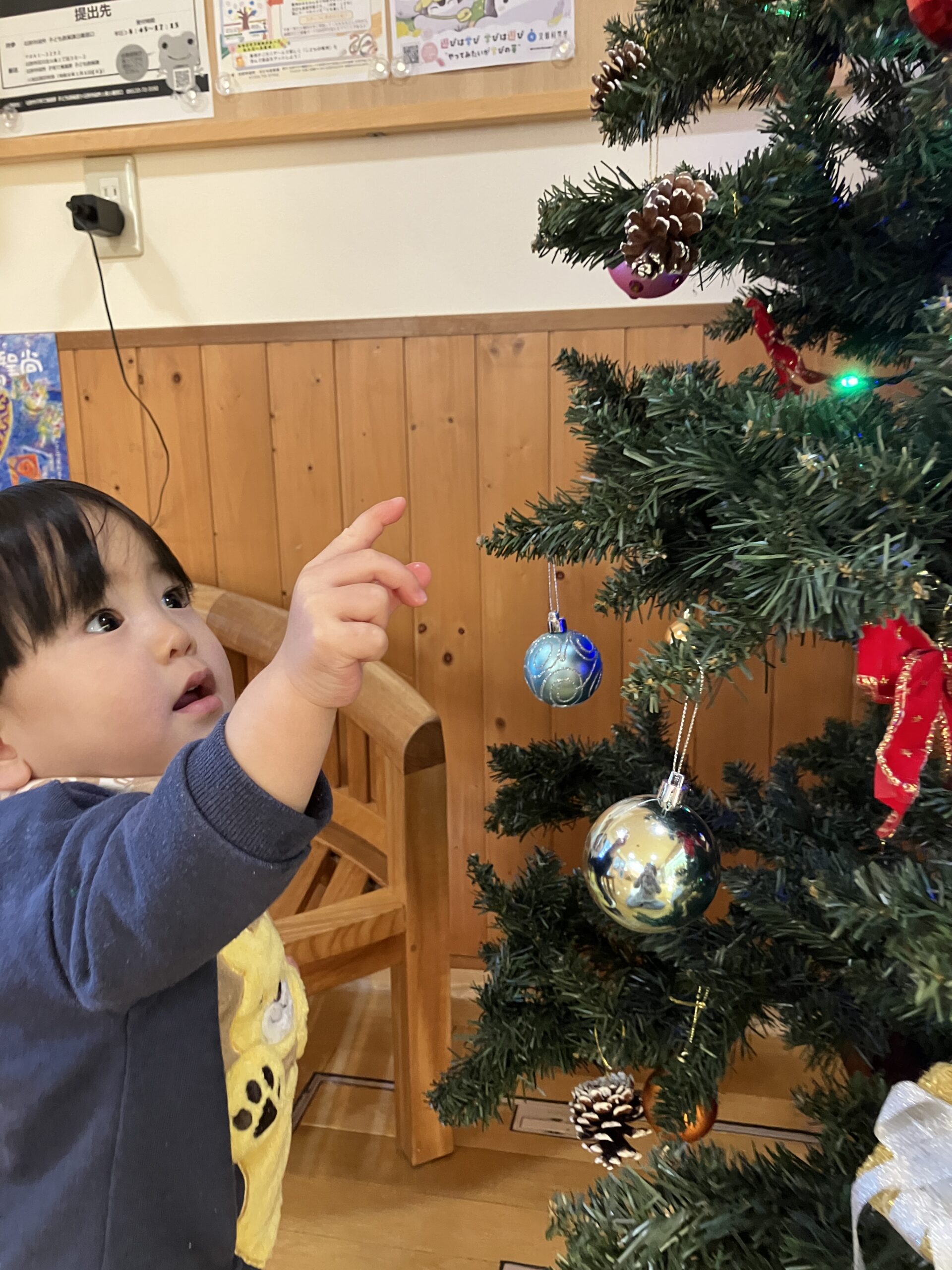 玄関に飾られたクリスマスツリーや、お部屋の飾りを見て、子どもたちはいつもと違う雰囲気を感じながら過ごしていました。
